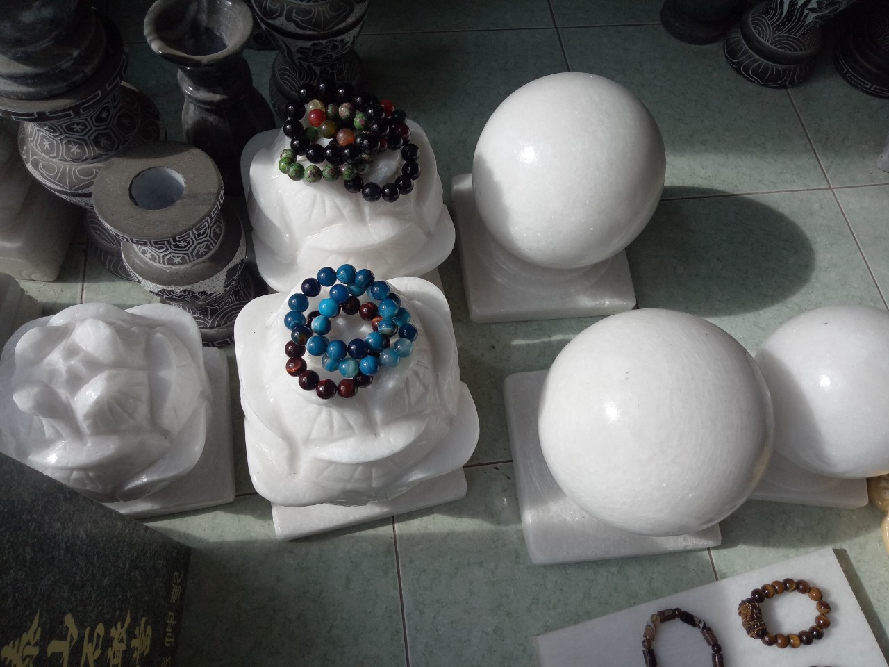 Mâm bồng đá, quả cầu đá, búp sen, kì lân, ống cắm hương.